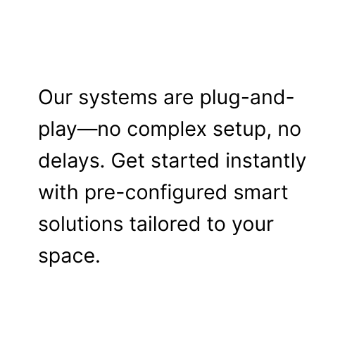 Our systems are plug & play. No complex set-up, no delays. Get started instantly with pre-configured smart solution to your space.