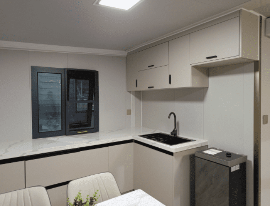 The 30ft Expandable Container House is designed for those needing generous space with modern conveniences. Perfect as a permanent dwelling, portable office, or guest accommodation.